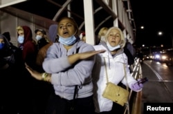 Unos 200 migrantes que habían caminado hasta la barrera permanecieron allí hasta altas horas de la noche.